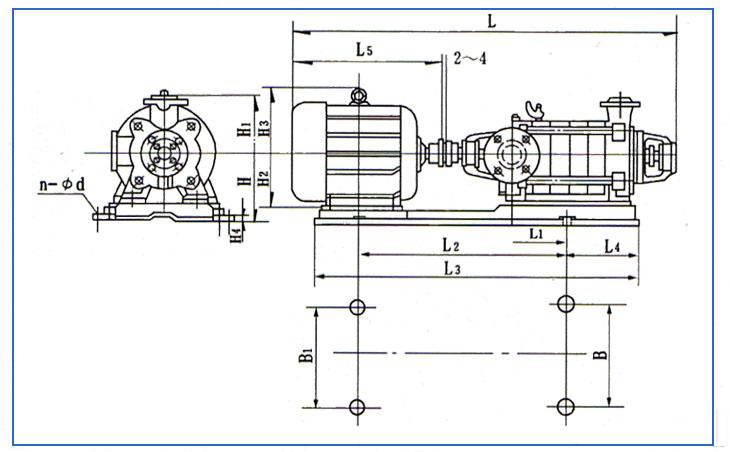 D、DG型泵系卧式、单吸多级、分段式离心泵。具有效率高、性能范围广、运行安 全平稳、噪音低、寿命长、安装维修方便等特点。供输送清水或物理化学性质类似于水的其它液体。也可以通过改变泵过流部件材质、密封形式和增加冷却系统用于输送热水、油类、腐蚀性或含磨粒的介质。产品执行JB/T1051-93《多级清水离心泵型式与基本参数》标准。